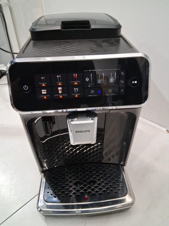 + The truebrew door hinge is broken, the small bean lid is missing + + Tested for power and checked for water leaks + + Missing the frother cup +