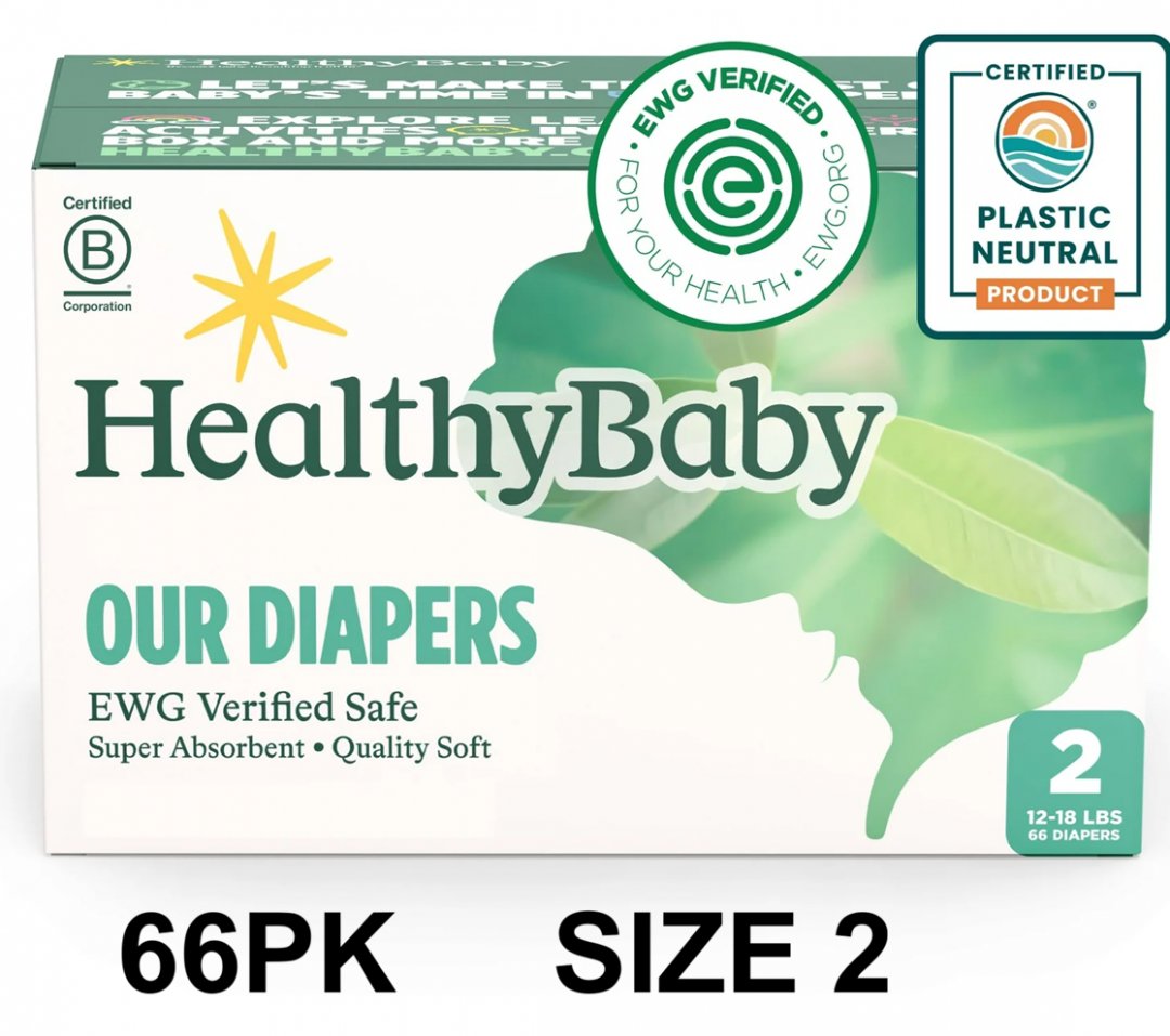 66PK HealthyBaby Safe Organic Cotton Enhanced Diapers - Size 2