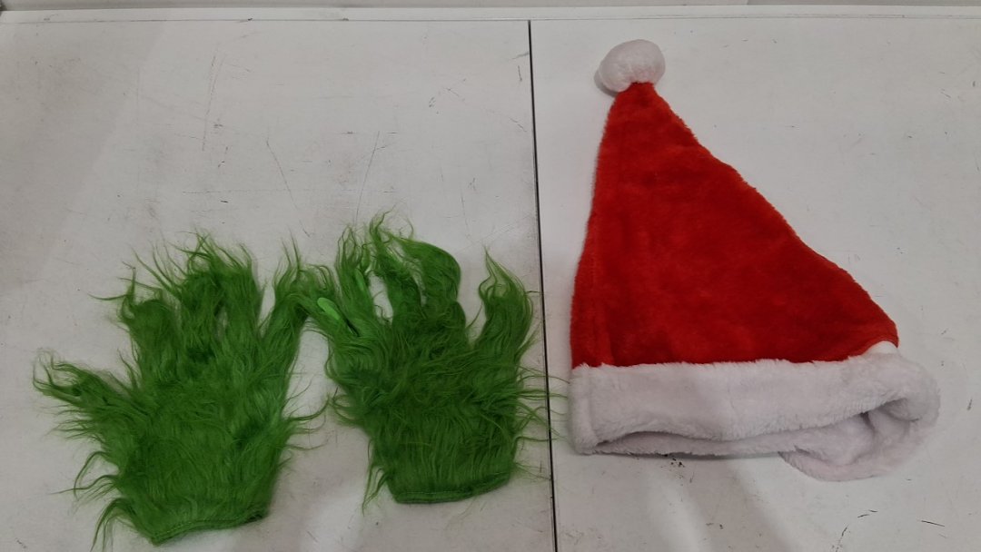 Gorbgle ChristmasnGrinch costume with Hat and Furry Hand Gloves - Red/Green
