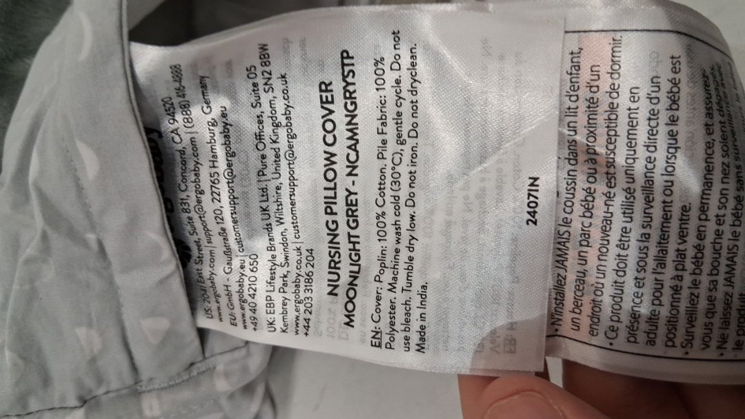 ERGOBABY NATURAL CURVE NURSING PILLOW COVER - Grey