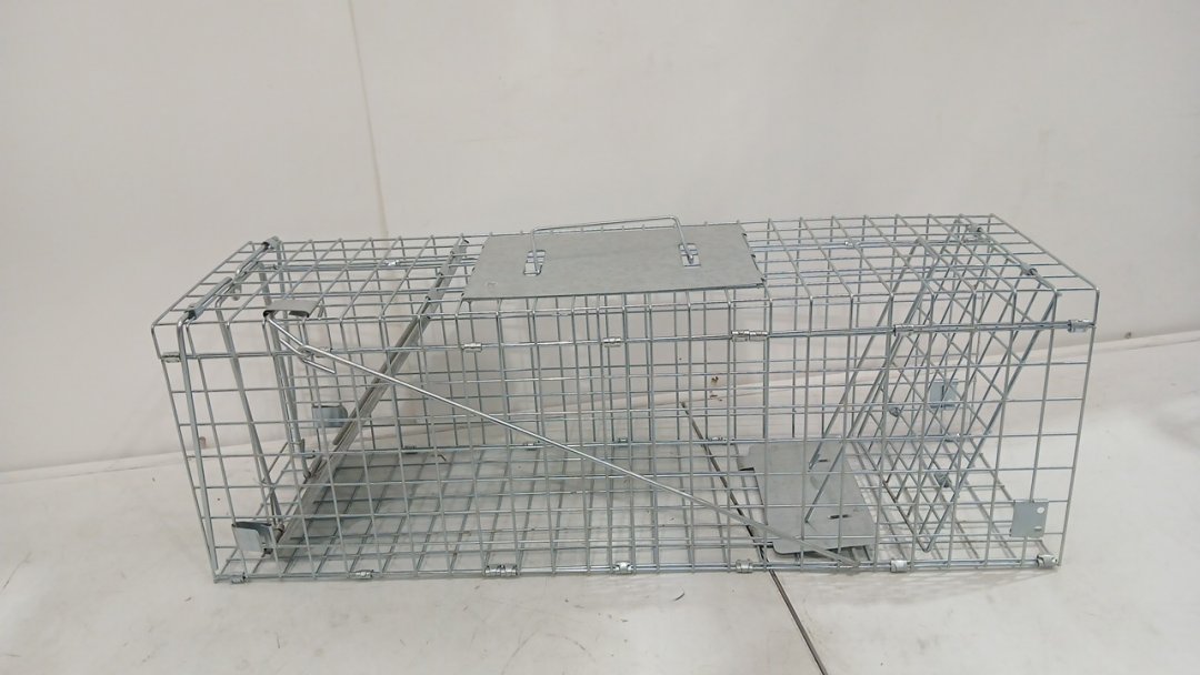 VEVOR HUMANE GALVANIZED IRON ANIMAL TRAP - 24" x 8" x 8" - SILVER (MODEL: LB-18)