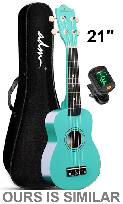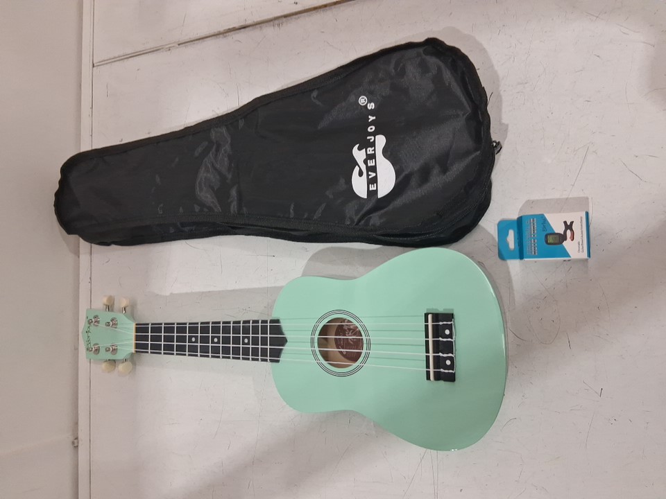 Everjoys Soprano Hawaiian Ukulele with carry bag and Digital Tuner - 21" - teal