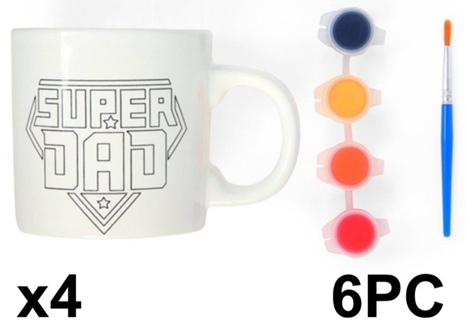 4 (6PC) Bullseye Playground Paint Your Own Mug for Father’s Day - WHITE