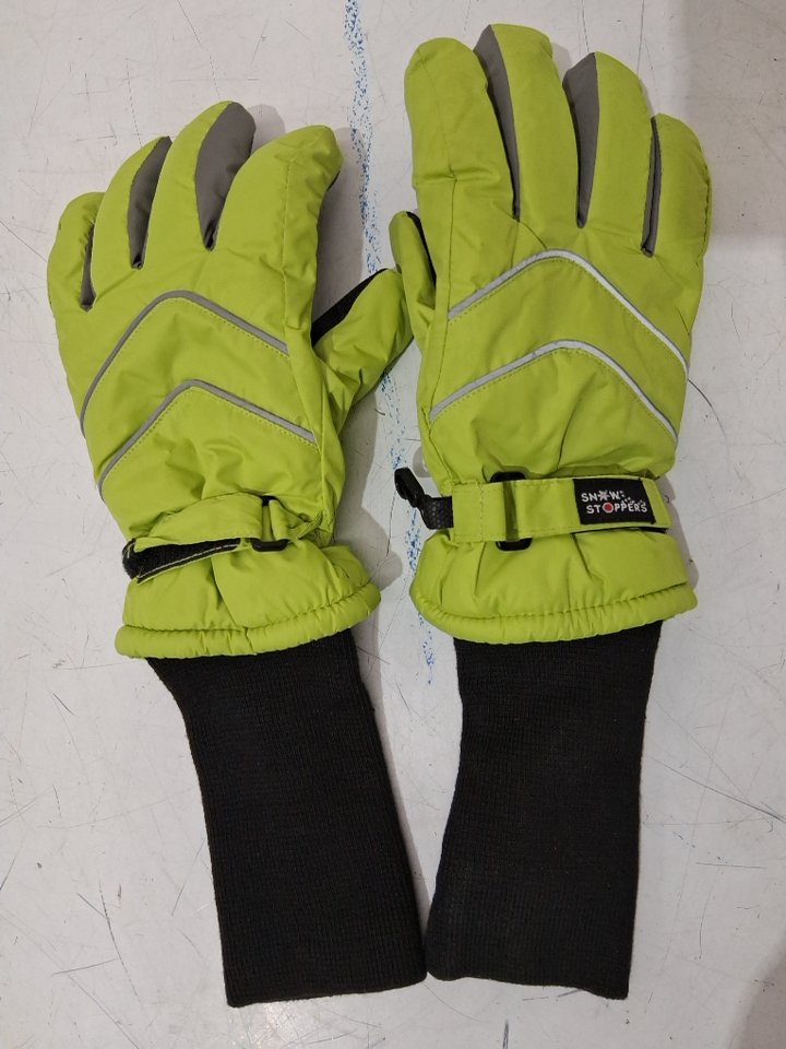 kid's snow stoppers waterproof long cuff winter gloves - size medium - lime/green