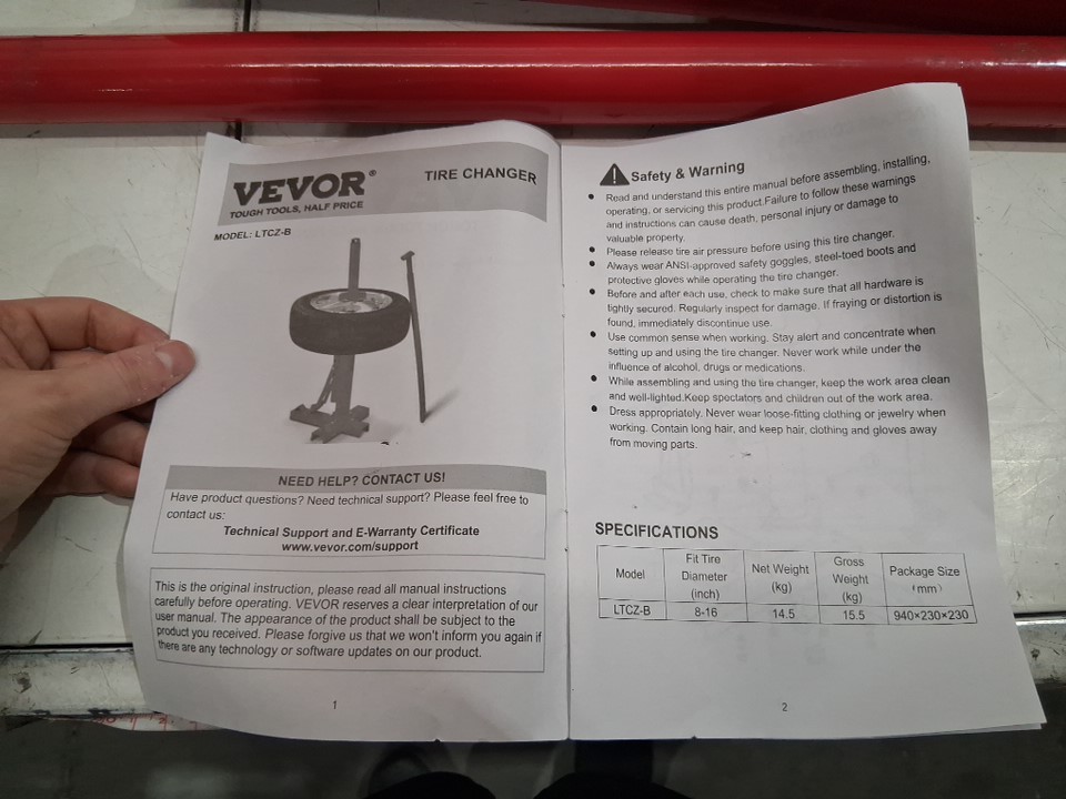 VEVOR Portable Manual Hand Bead Breaker Tire Changer/Mounting Tool for garage or home - for 8" to 16" Tires - RED (model: ltcz-b)