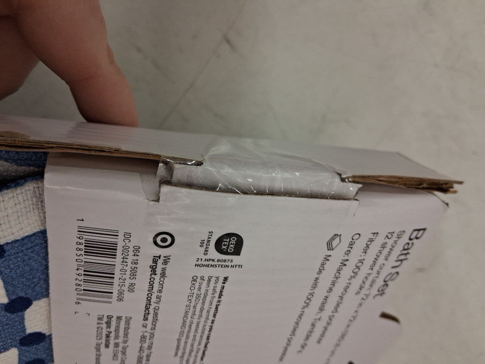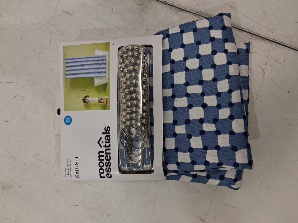 room essentials FABRIC SHOWER CURTAIN bath SET with hooks included - 72" x 72" - blue/white