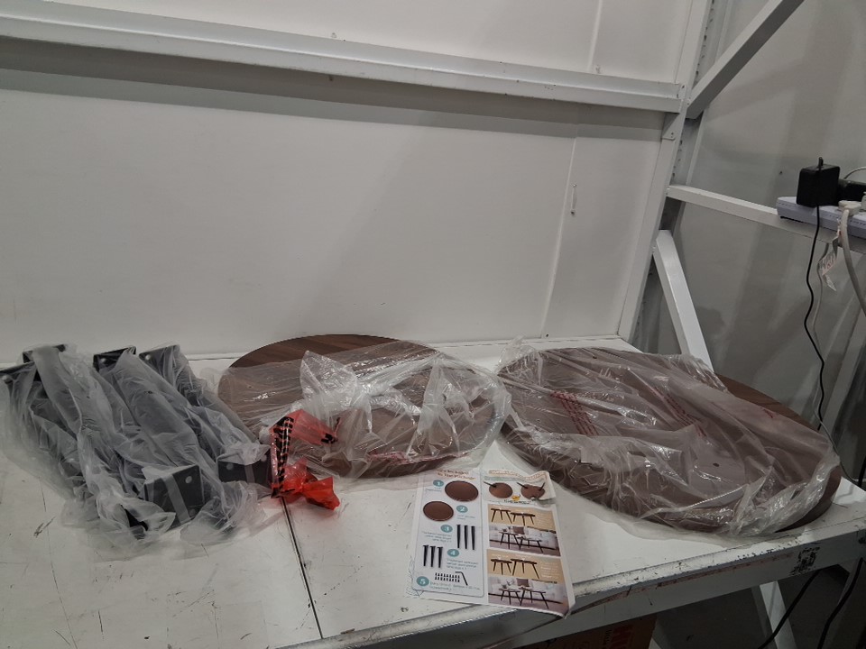 On the bottom of the big round table there is a broken piece, but it could be fixed, see photos.