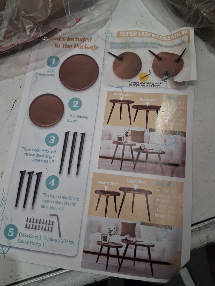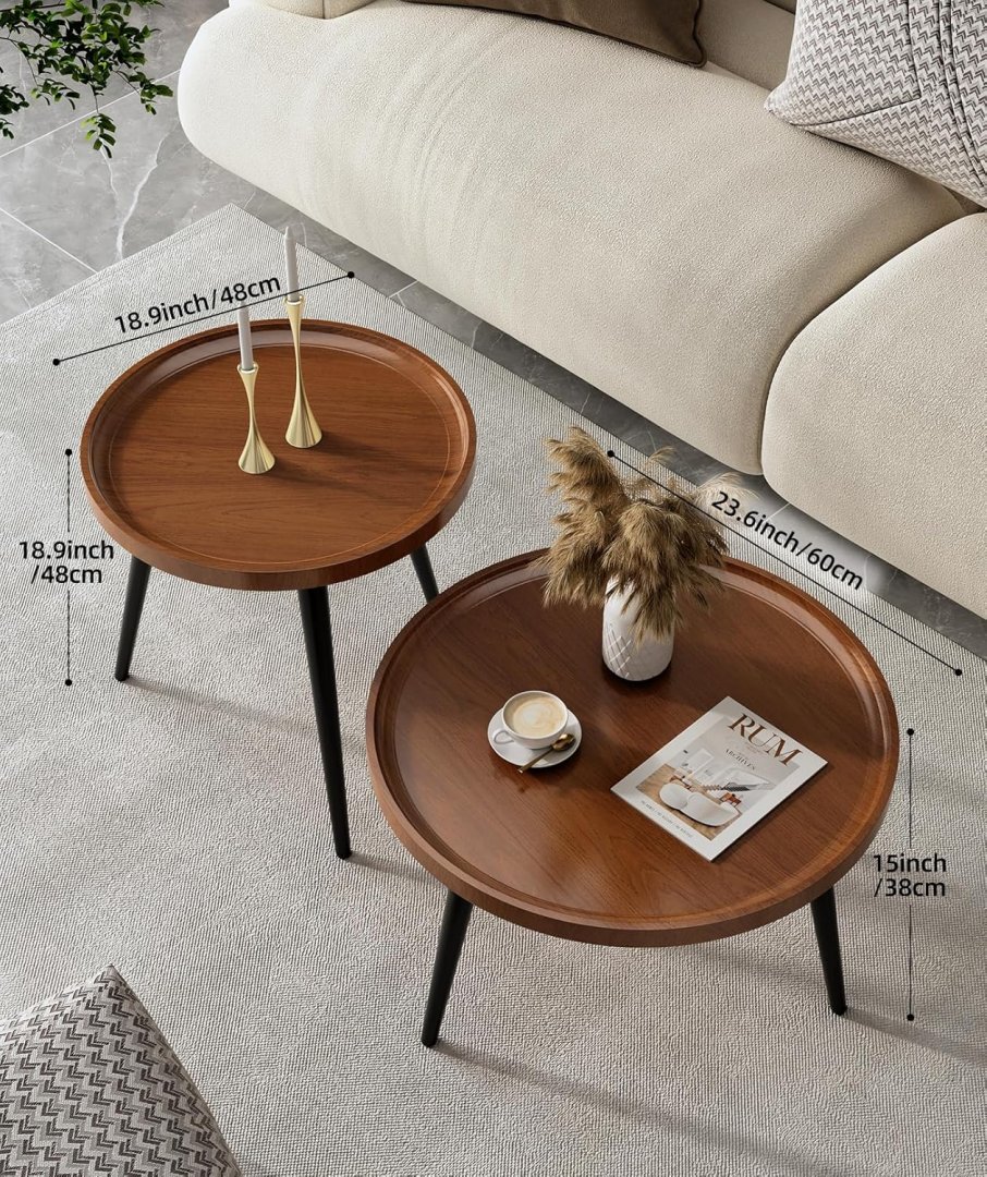 2PC modern Round Coffee Tables - small round 18.9" - big round table 23.6" - Walnut brown (model‎: CT-010)