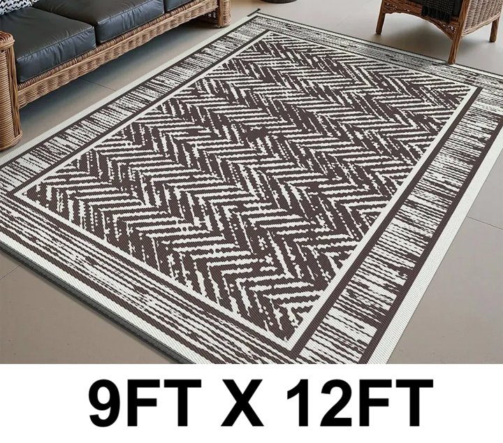 outdoor waterproof straw rug - 9ft x 12ft - beige/brown- (model:‎CA-PPG-CSUO-MZ-9X12-1)