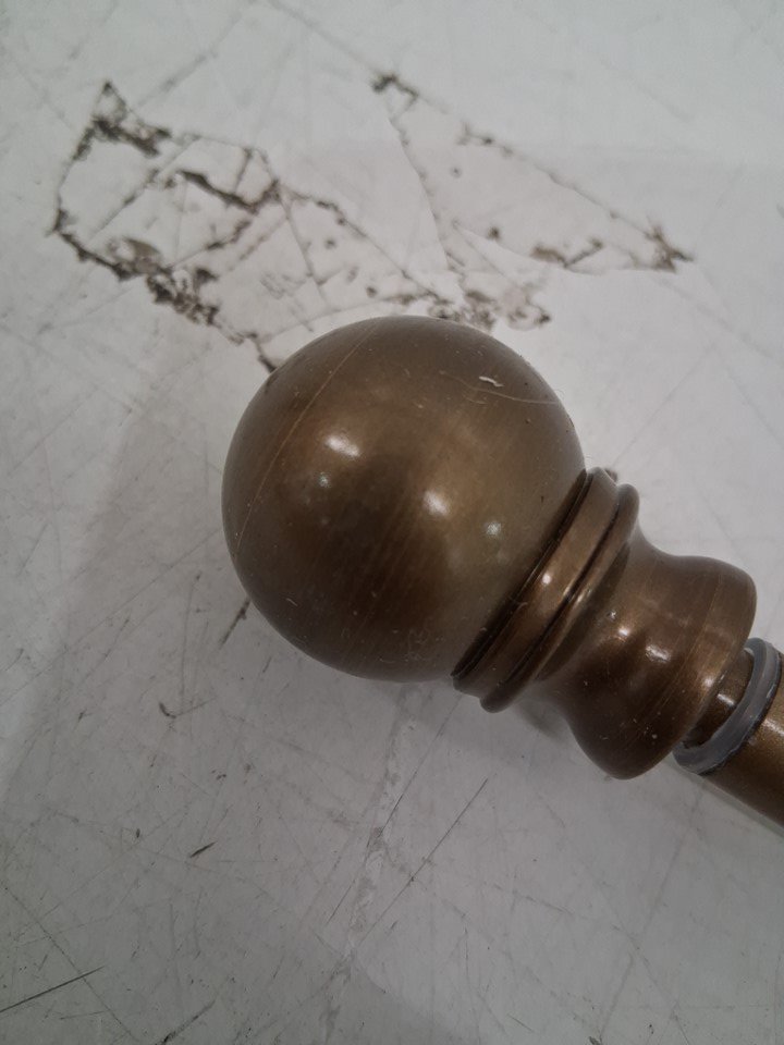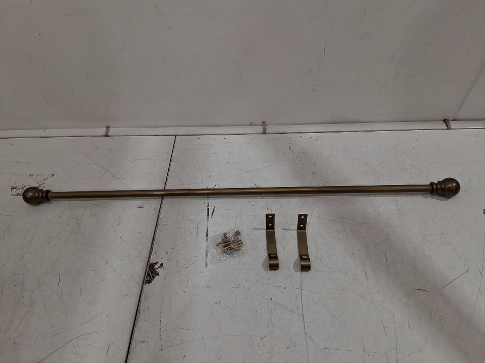 Kenney Davenport Adjustable Single Petite Café Curtain Rod with Ball Finials - 28-48" - brushed brass (model: kn55972rem)