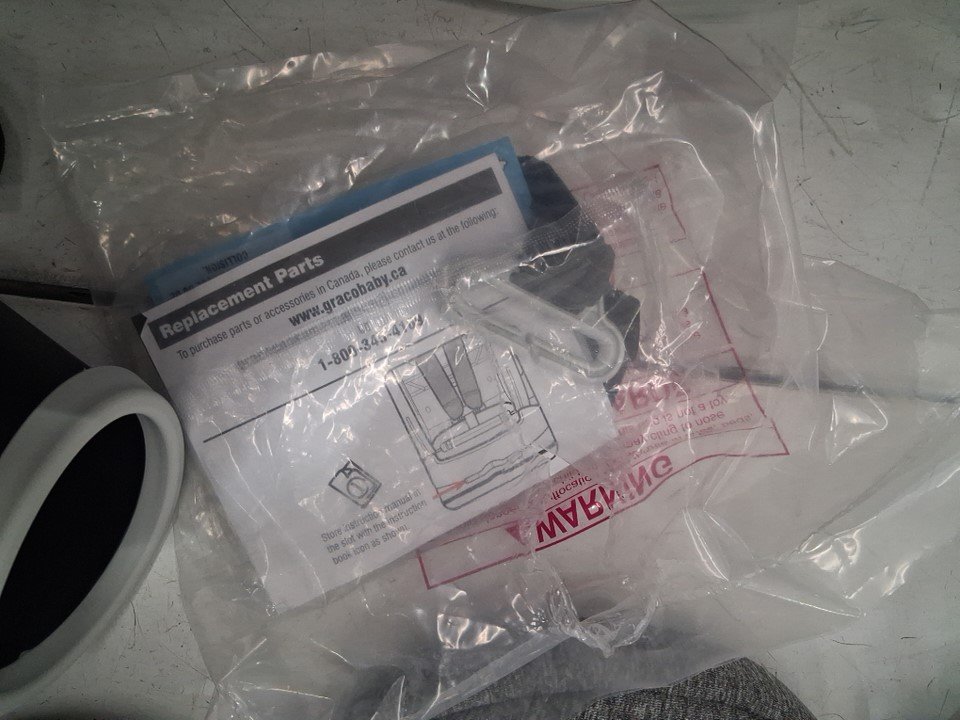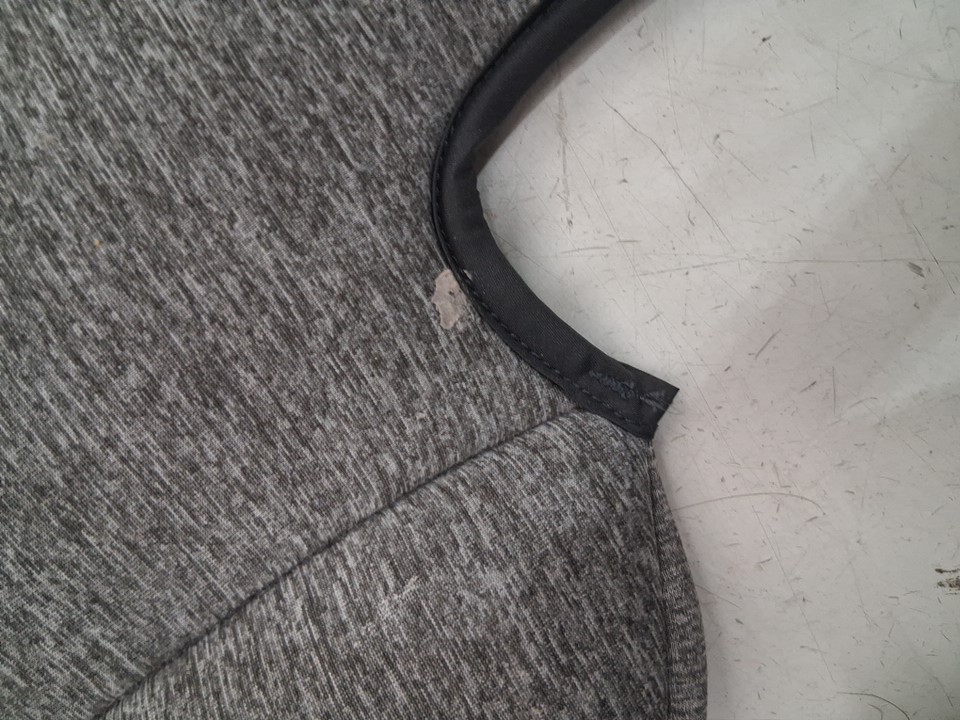 item has a small spot of light food residue on seat cover and some crumbs/ dirt remnants in seat and cupholders from previous light use