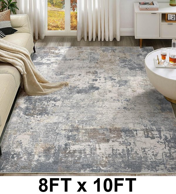 UERMEI Washable No Slip Abstract Soft Area Rug - 8ft x 10ft - Blue/Grey