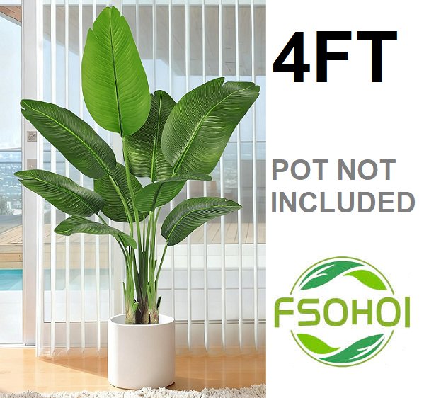 fsohoi Bird of paradise artificial plant with 9 trunks - 4FT - Green/black