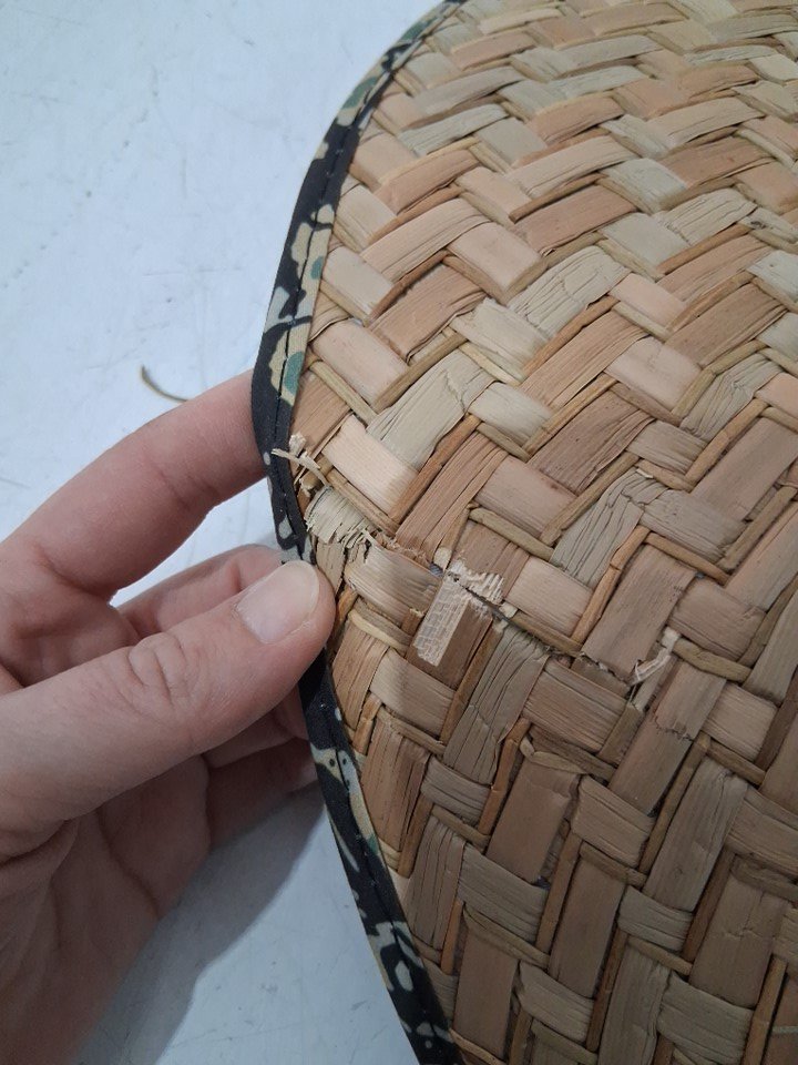Has a bent at the front and minor distress on the top at the back.