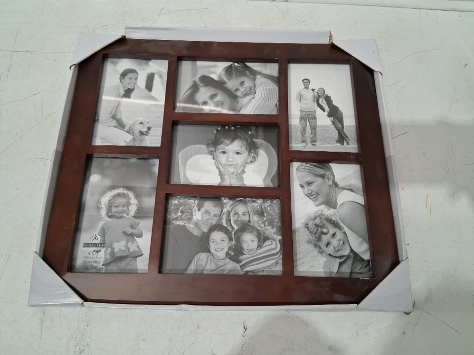 MALDEN Berkeley 7 Opening wooden COLLAGE PICTURE FRAME for 4" X 6" photos - 16'' x 14'' - brown