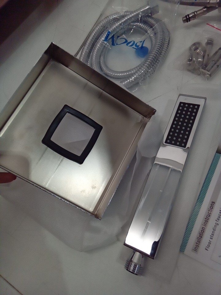 please note that there is minor staining on the handheld sprayer and on the bottom of the stand. see photos.