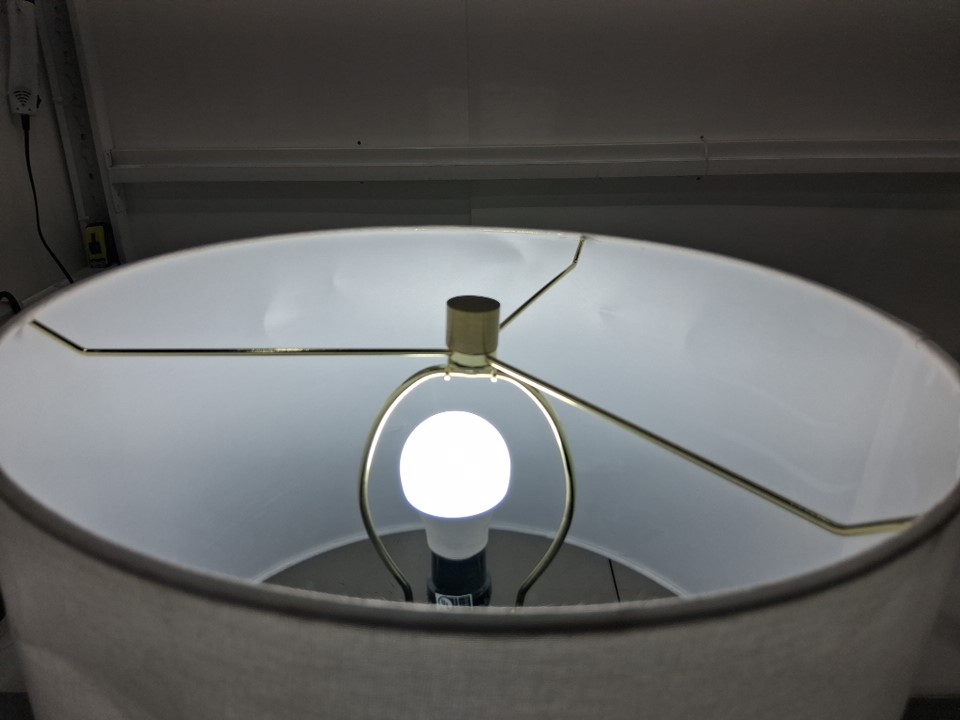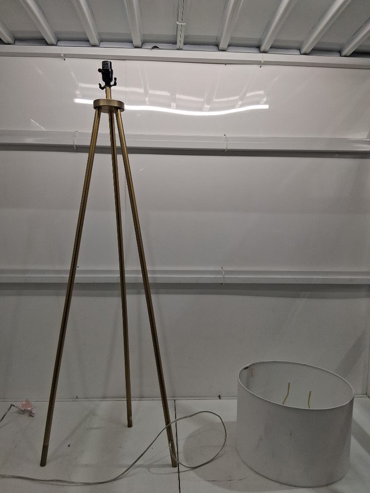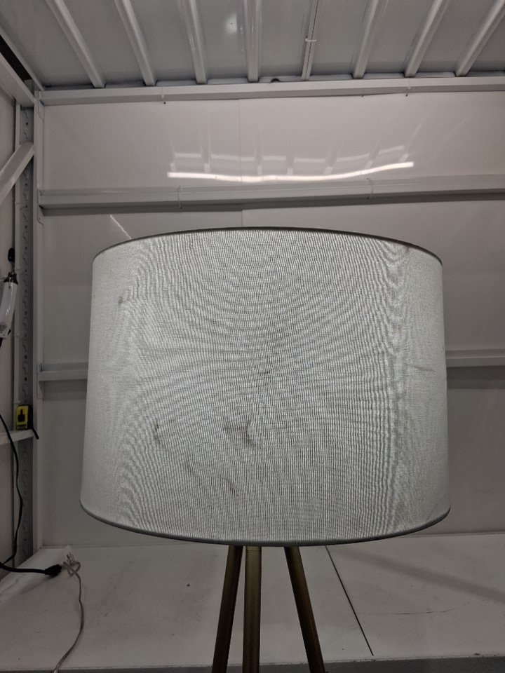 No bulb included. Tested for power Please See Photos: - There are some scuffs/bends on the base and dents on the shade presumably caused from shipping