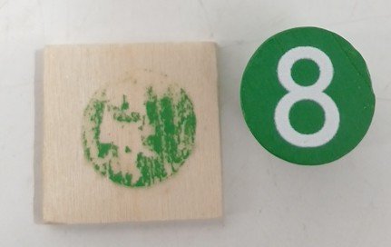 The 8 wooden button needs to be glued back on, one of the pieces has crayon marks on it, and some accessories may be missing