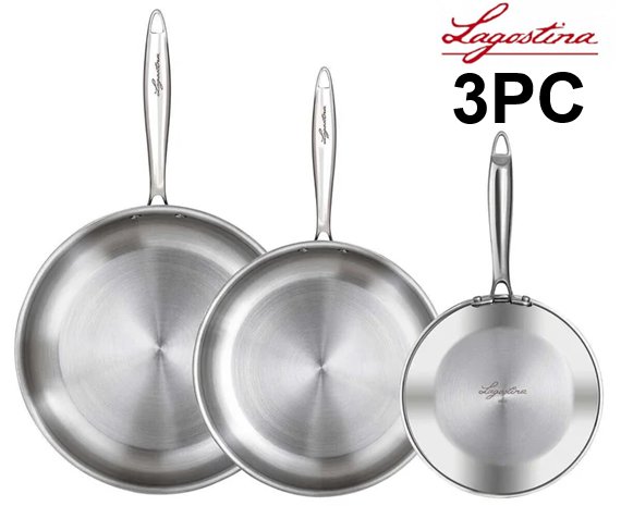3pc Lagostina Forte Stainless Steel Frypan Set - 12.5"/10.9''/8.6'' - silver