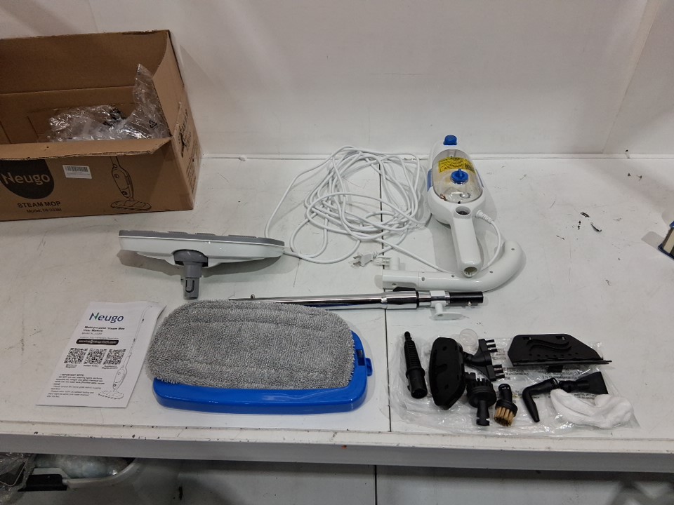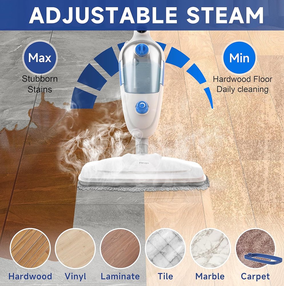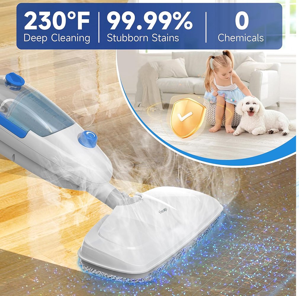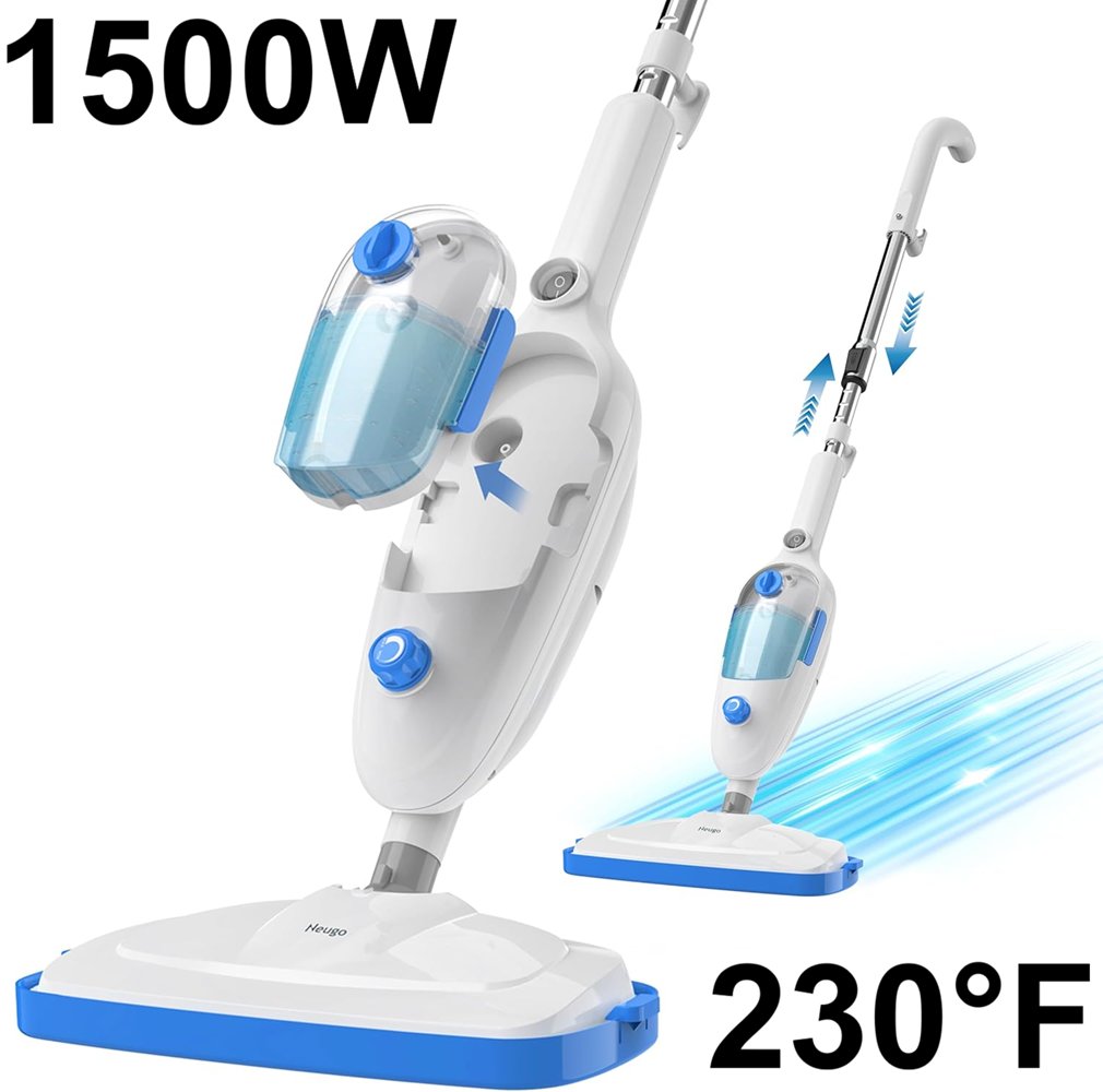Neugo multi-surface floor cleaning steam mop with adjustable modes and height - 230°F - 1200W - White/Blue - (Model: NE033M)