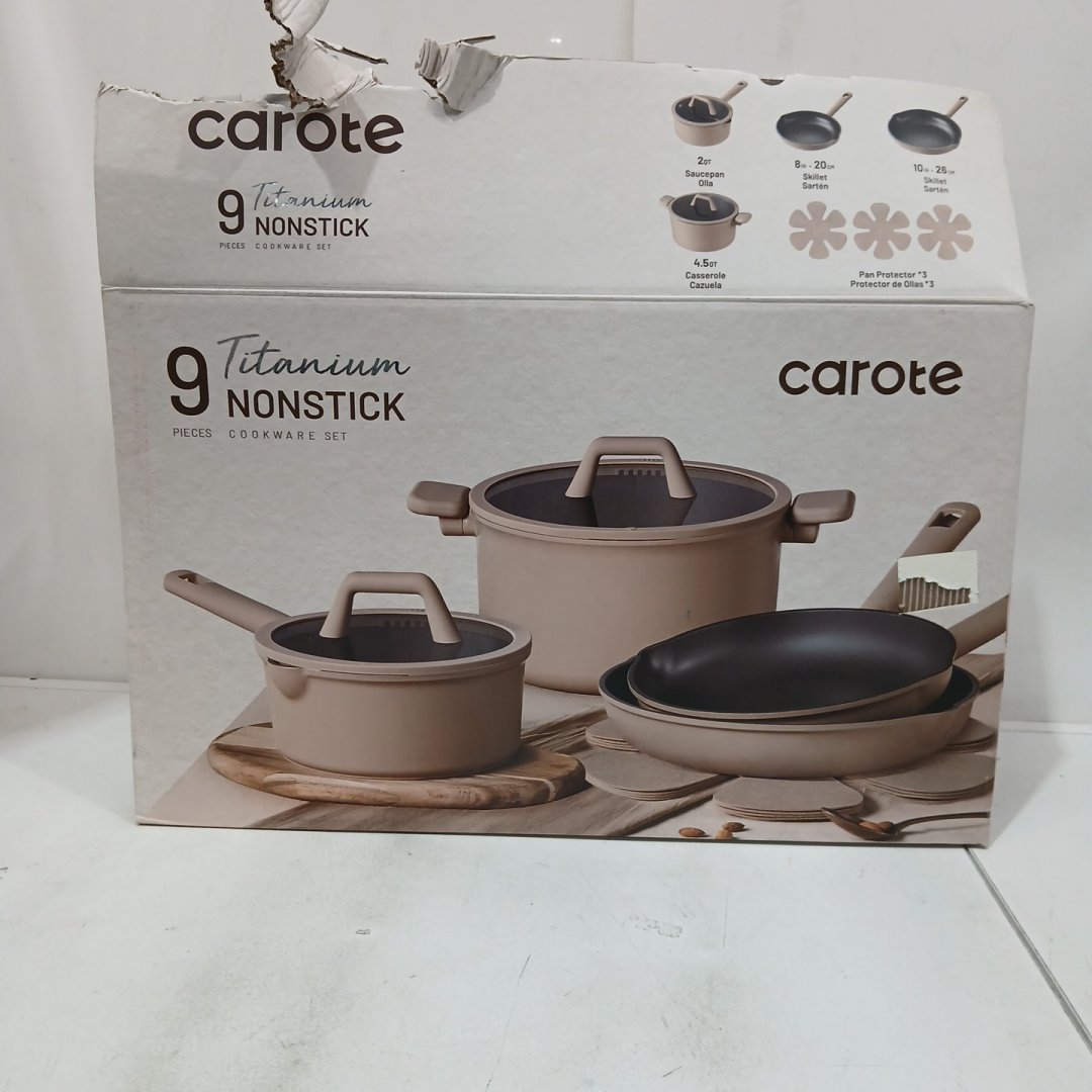 9PC CAROTE TITANIUM NON-STICK RAPID HEAT COOKWARE SET - TAUPE BROWN