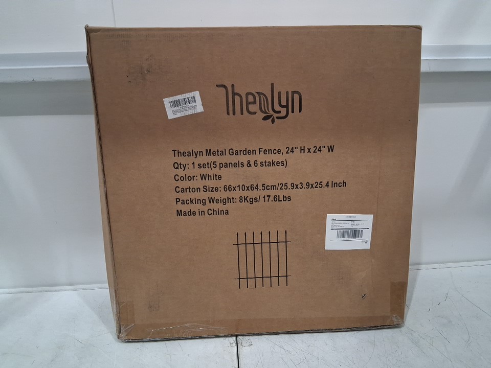 5PK THEALYN METAL GARDEN FENCE PANELS - 24" X 24" EACH (10FT TOTAL) - WHITE