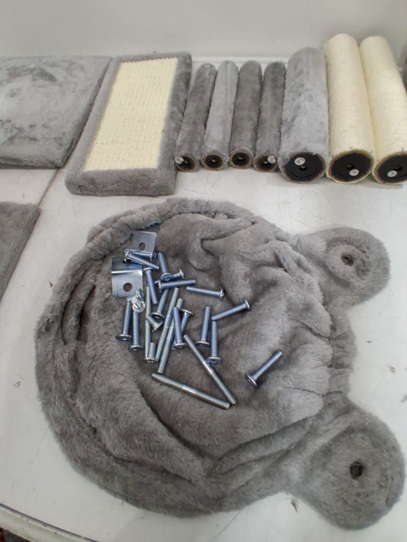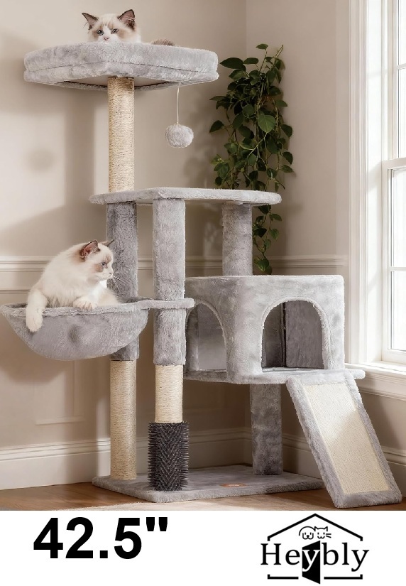HEYBLY CAT TREE TOWER CONDO WITH PADDED PLUSH PERCH COZY HAMMOCK AND SISAL SCRATCHING POSTS - 42.5" - LIGHT GREY (MODEL: HCT005SW)