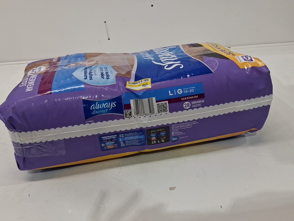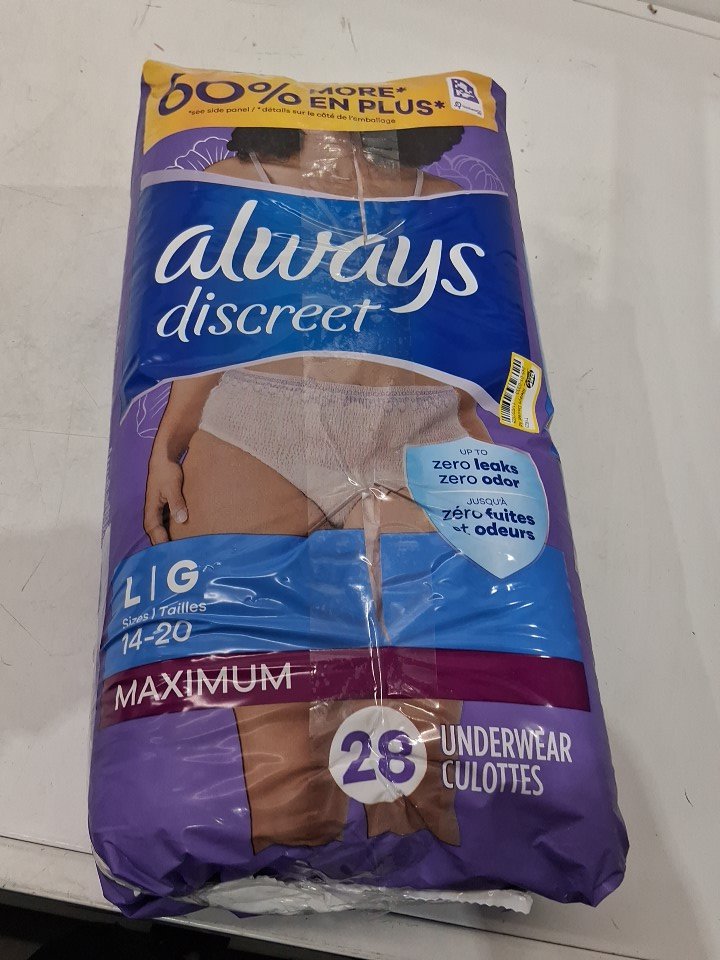 28PK Always Discreet Adult Underwear for Woman - LARGE - Pink