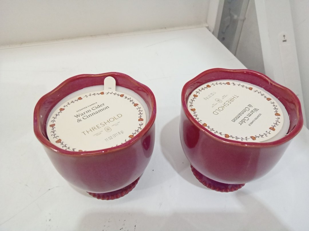 2 Threshold Scented Candle Cups - 11oz Each - Maroon Warm Cider and Cinnamon