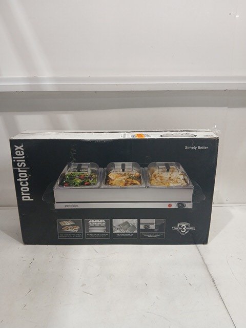 Proctor Silex Adjustable Heat Buffet Server & Food Warmer with 3 oven-safe dishes - 2.4L /each - Silver - (Model: 34300RG)