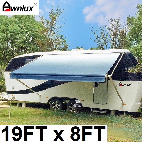 awnlux manual modular retractable rv awning - 19ft x 8ft - white/ocean blue (model: ca-wa2004-19x8)