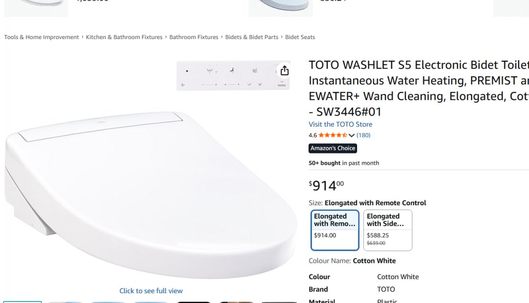 TOTOwashlet s5 electronic heated toilet seat bidet with controller and instantaneous water heater - 21" x 15" - elongated - white (model: sw346#01)