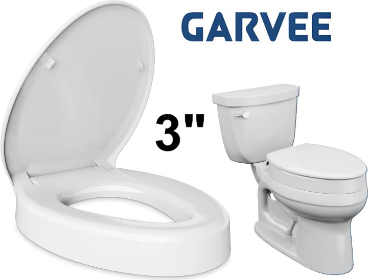 Garvee Elevated Elongated Toilet Seat Riser for Seniors with Slow Close - 3" x 18.5" - White