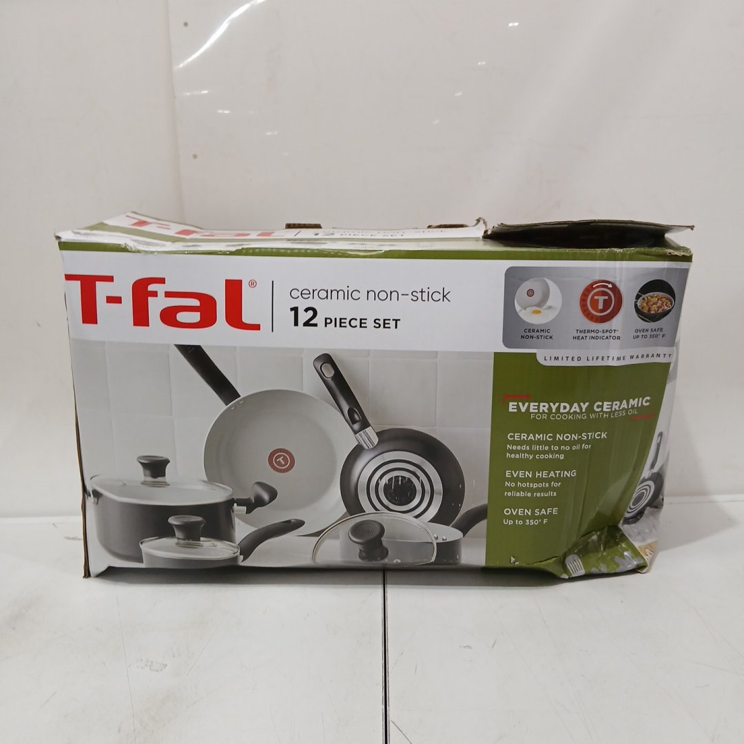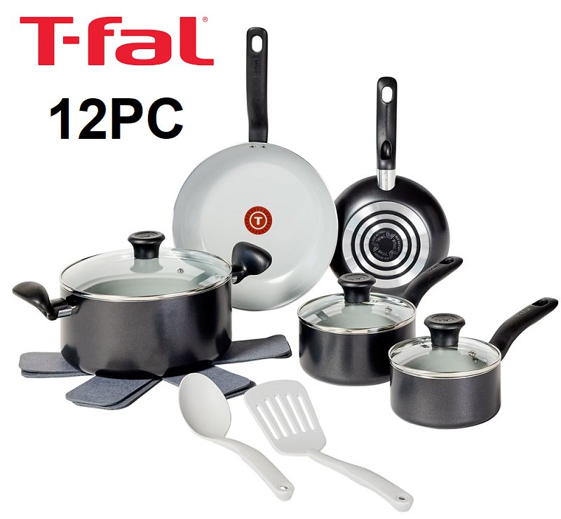 12PC T-FAL SIMPLY COOK EVERYDAY CERAMIC NON-STICK COOKWARE SET - BLACK (MODEL: G931SCDI)