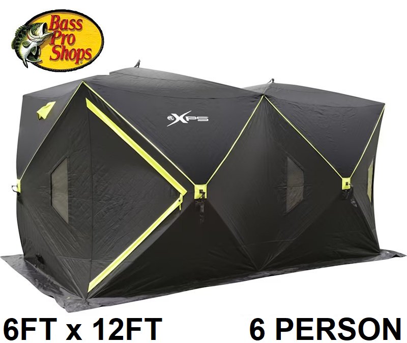 bps xps uninsulated ice shelter with 10 ice anchors - 6ft x 12ft - 6 person - black/yellow (model: xps1582/321068001)