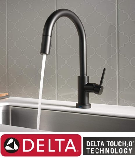 DELTA FAUCETS Trinsic Single-Handle Touch Kitchen Sink Faucet with Pull Down Sprayer, Touch2O Technology and Magnetic Docking Spray Head, Matte Black (model: 9159T-BL-DST)