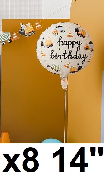 8 party deco construction happy birthday foil balloon - 14" - multi-colour