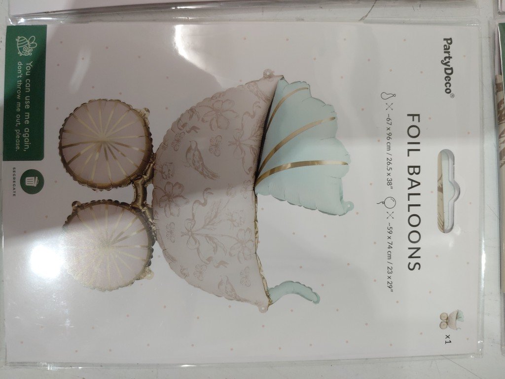 8 party deco vintage style baby carriage foil balloon - 23" x 29" - whie/blue/gold