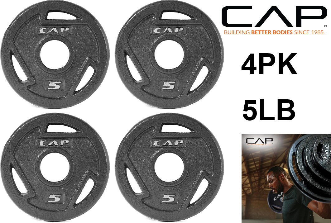 4pk CAP Barbell 2-Inch Olympic Grip Weight Plates- 5lbs- black