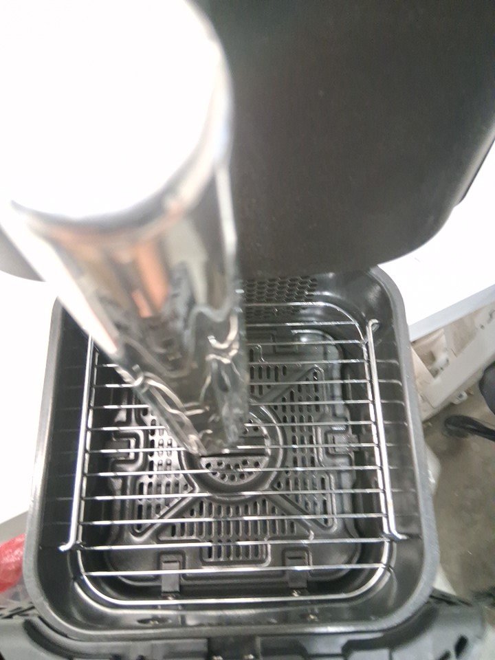 One of the panels is not sitting flush. Signs of use due to marks and residue found. Tested for power and both baskets appear to be producing heat.