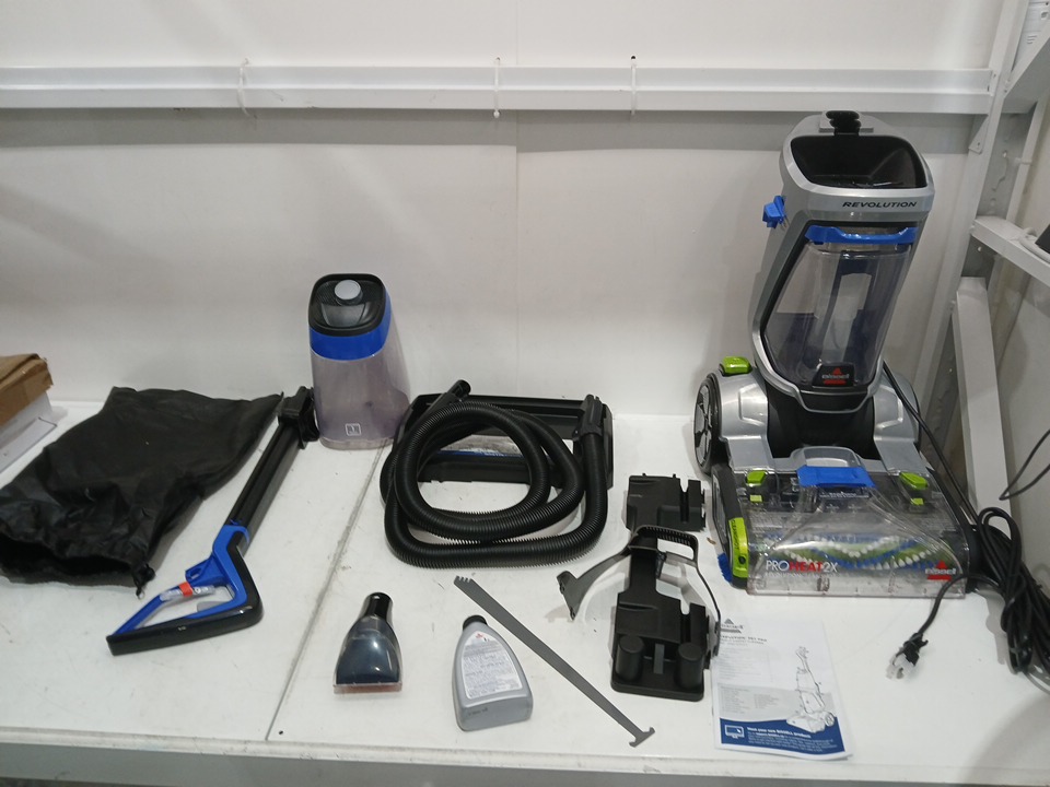 light signs of use overall on item, cleaned to the best of our ability in house. missing some cleaning soloution. may need additional cleaning for optimal performance. Tested for power and function. handle installed to test, once installed, does not come apart