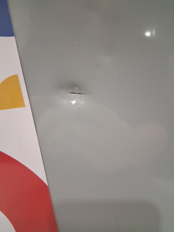 THERE IS A DENT IN THE ITEM FROM SHIPPING (SEE PHOTOS)