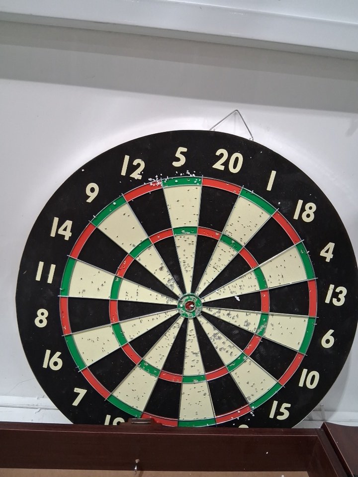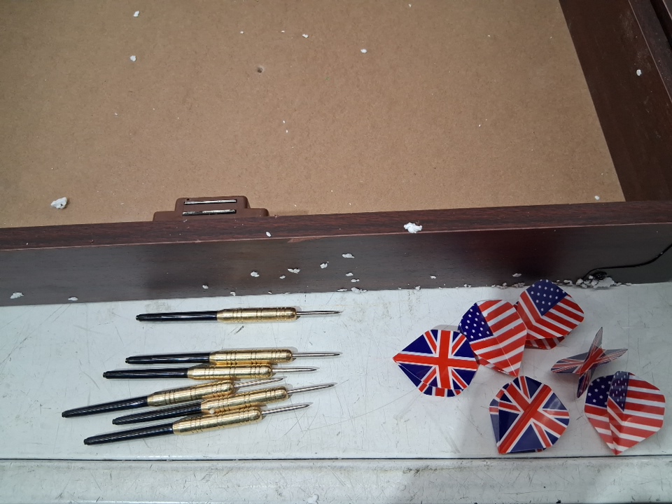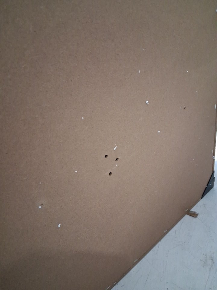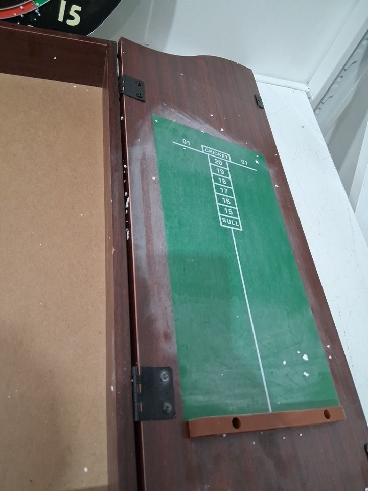 missing hardware and chalk/eraser. the board has pin marks and chalk residue tells it's been used before
