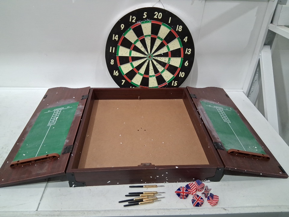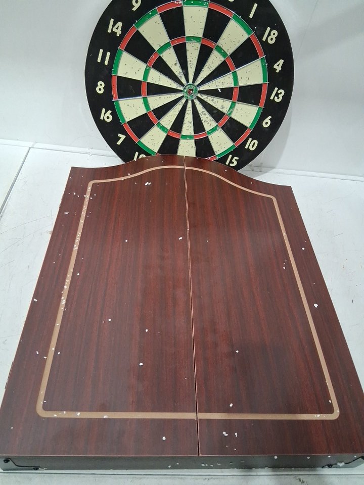 TRADEMARK GAMEROOM DARTBOARD MAGNETIC DOOR CABINET - REALISTIC WALNUT FINISH (model: 15-DG910-IMP)
