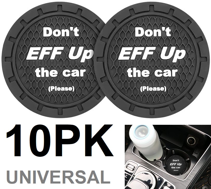 10PK NON-SLIP ANTI-SCRATCH universal silicone vehicle cup holder coasters "don't eff up the car please" - black
