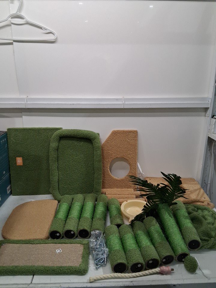 Heybly Cat Tree with Perches, Basket, Leaf, Feeding Bowl - Green/yellow - (model: HCT015G)
