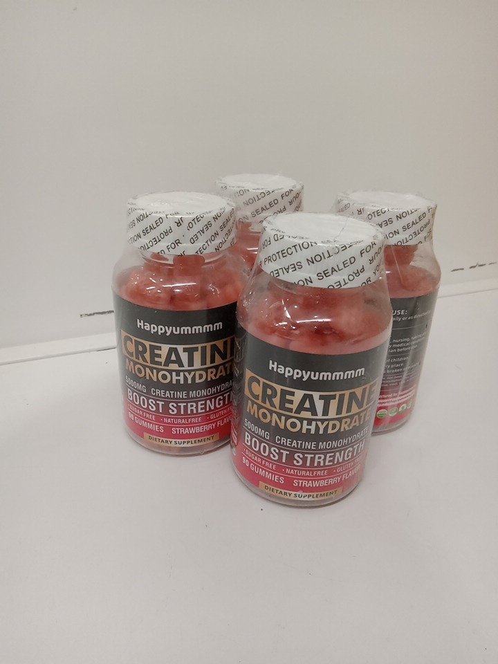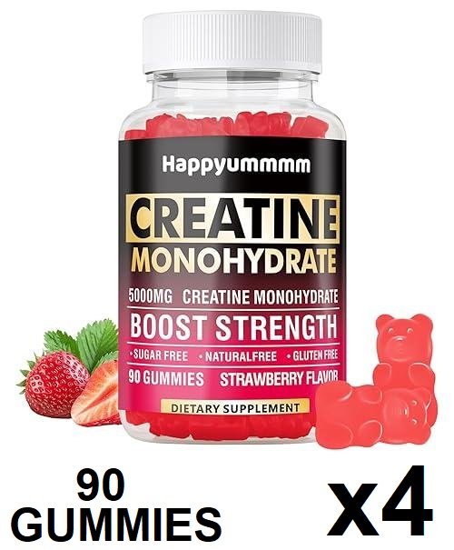 4 (90 Gummies) Happyummmm Creatine Monohydrate gummies for muscle strength & energy boost - 5000mg - strawberry