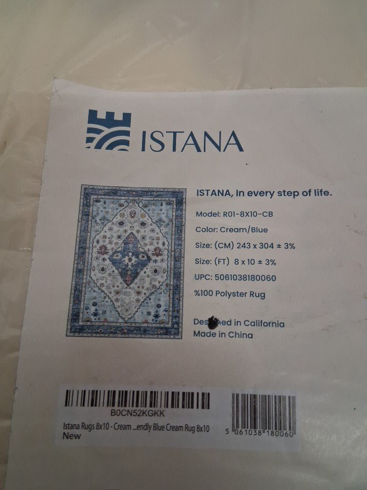 Istana rugs foldable washable area rug - 8ft x 10ft - Cream/blue (Model: r01-8x10-cb)