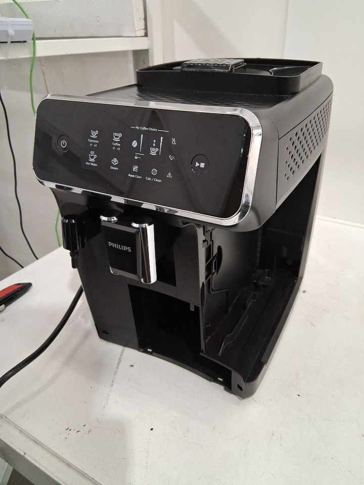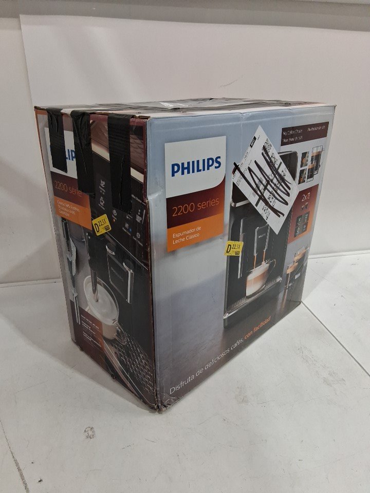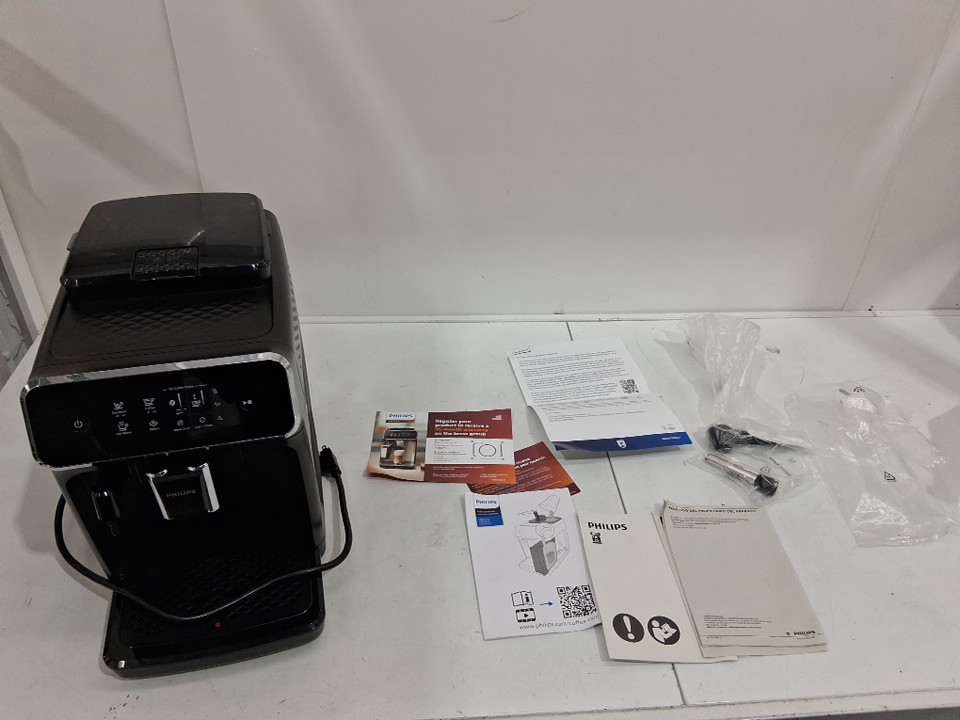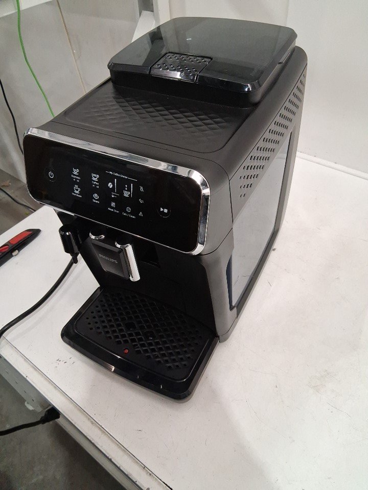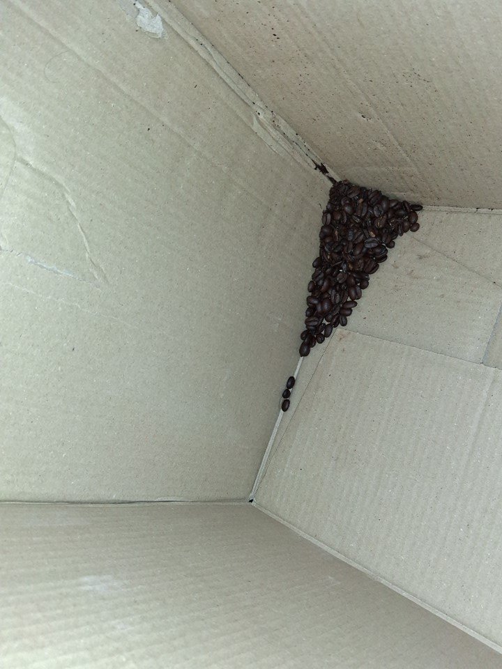 Plenty of coffee beans were in box on open. clear use of item, did basic cleaning during inspection. Basic power test, unable to check function due to the nature of the item. Should be able to clean up the last spots with minimal to no stains.