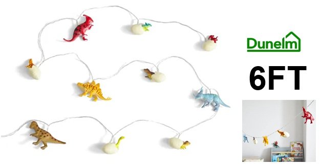 Dunelm 10 Roar Dinosaur LED string lights- 6Ft- assorted colours